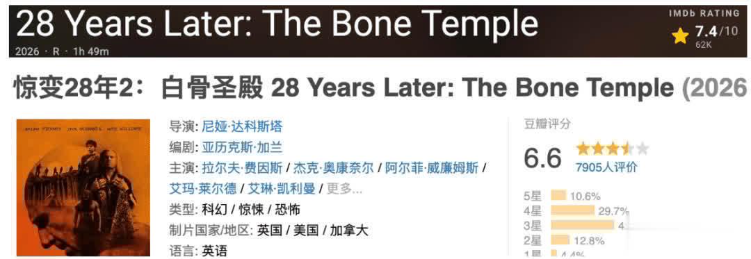 时隔多年万博体育,「丧尸片·28系列」再出续作,剧情离谱又猎奇。 上映后,外网口碑还可以。 现在IMDb7.4分,豆瓣6.6分。 今天院长就来讲讲这部—— 《惊变28年2:白骨圣殿》28 Years Later: The Bone Temple 提及惊变28系列,深信老影迷们脑海中早有画面:2002年的《惊变28天》里,一醒悟来,男主在空荡荡的伦敦街头被追着决骤的场景... 紧接着2007年的《惊变28周》把灾祸限制扩大到全城,28周后东谈主类尝试重建却再次失控,寂静中折射复杂东谈主性。 畴昔