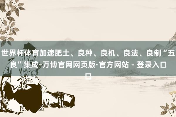世界杯体育加速肥土、良种、良机、良法、良制“五良”集成-万博官网网页版·官方网站 - 登录入口
