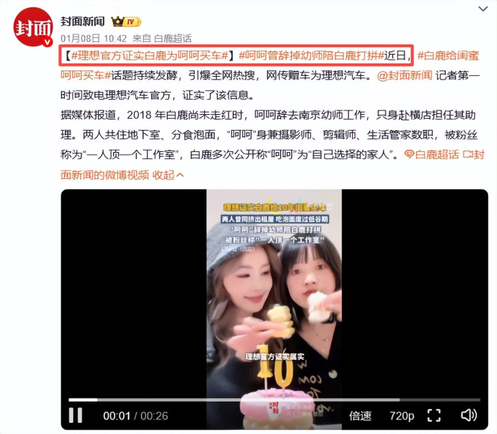 文|小雨淅淅 裁剪|司徒夜 当年,白鹿出谈的时候,大众只知谈这是她的艺名。 但鲜少有东谈主知谈她为何给我方起名叫“白鹿”。 直到她在自后爆火,她以往的一些帖子被网友扒出。 大众这才发现,原本她的艺名竟和鹿晗联系。 现如今,跟着鹿晗因司晓迪爆料而堕入争议。 这位曾将其视为偶像的白鹿,在2026年开年便凭借一个举动罢了了口碑暴增。 01 2010年,还是白梦妍的白鹿成为了常州旅游商贸旅游英语专科的学生。 脾性机动豁达的她,担任了班里的团支书。 由于文笔精细,她还屡次插足了省级的征文比赛。 还拿到过