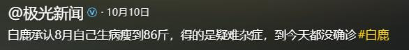 极光新闻|白鹿承认8月我方生病瘦到86斤