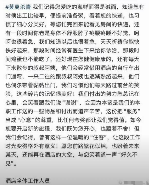 在《莫离》杀青之后,她所住的货仓还专门给她写了一篇称许的小作文。