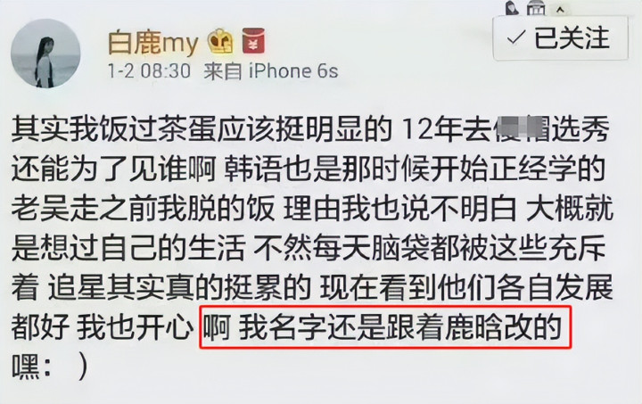 自后,她照着偶像的名字给我方起了个“白鹿”的网名。
