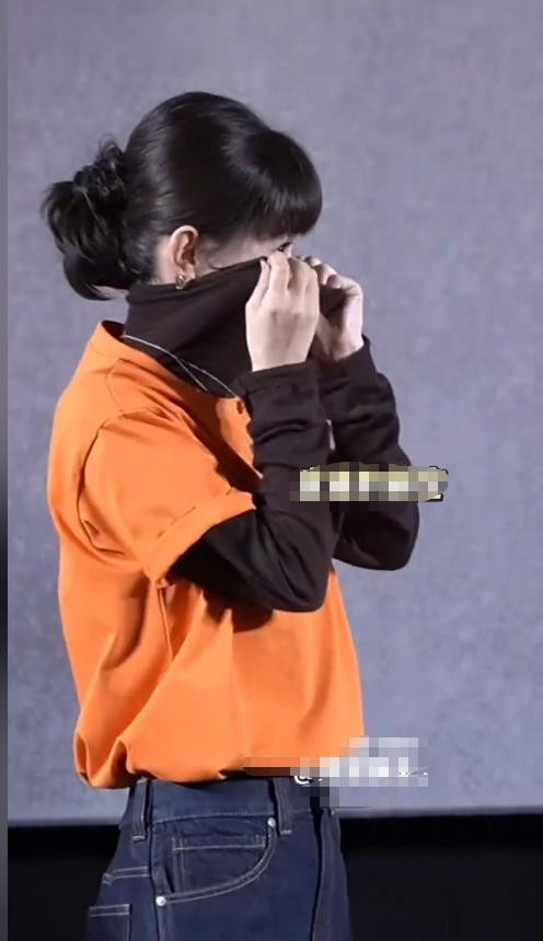 在这个流程中,双手一直在弄领子,试图覆盖住总计五官,这行径扭持的及其了。
