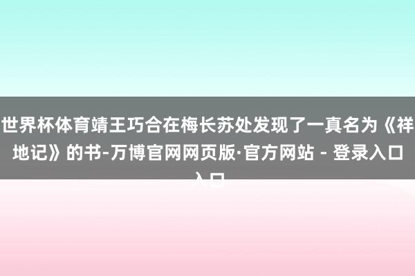 世界杯体育靖王巧合在梅长苏处发现了一真名为《祥地记》的书-万博官网网页版·官方网站 - 登录入口