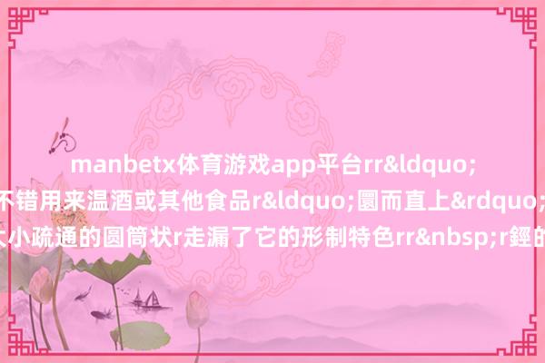 资讯 > manbetx体育游戏app平台rr“温器”是指不错用来温酒或其他食品r“圜而直上”则是指r器物呈高下大小疏通的圆筒状r走漏了它的形制特色rrr鋞的体量一般较小r上有提梁便于提拿搬运r小口径、深筒的缱绻利于保温r器底有三足r不错幸免了器物与大地战役面积过大r流失热量r应当亦然出于保温的沟通rrr皆集这几点来看r鋞的功能